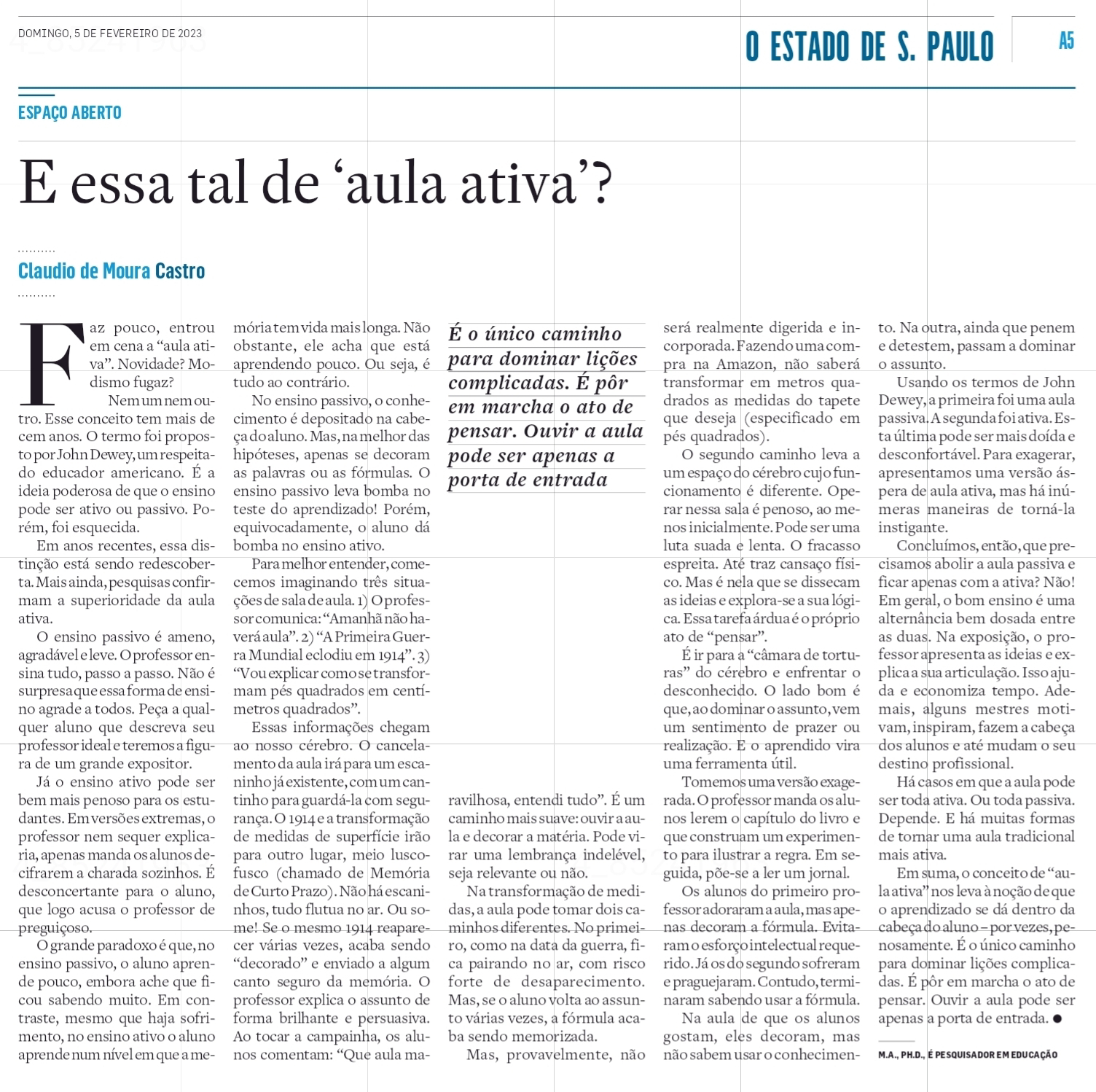 E essa tal de aula ativa ? Claudio de Moura Castro